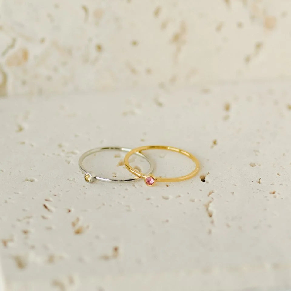 Gefertigt aus hochwertigem Edelstahl und veredelt mit 14K-Vergoldung, strahlt er zeitlose Eleganz aus. Der funkelnde Geburtsstein deiner Wahl macht den Ring zu einem ganz persönlichen Begleiter – perfekt für dich selbst oder als besonderes Geschenk.