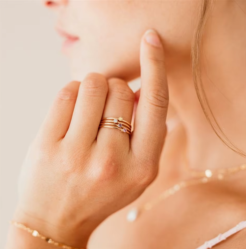 Trage deine Persönlichkeit immer bei dir: Unser filigraner Geburtsstein-Ring ist mehr als nur ein Schmuckstück – er ist ein Symbol für deine Einzigartigkeit.