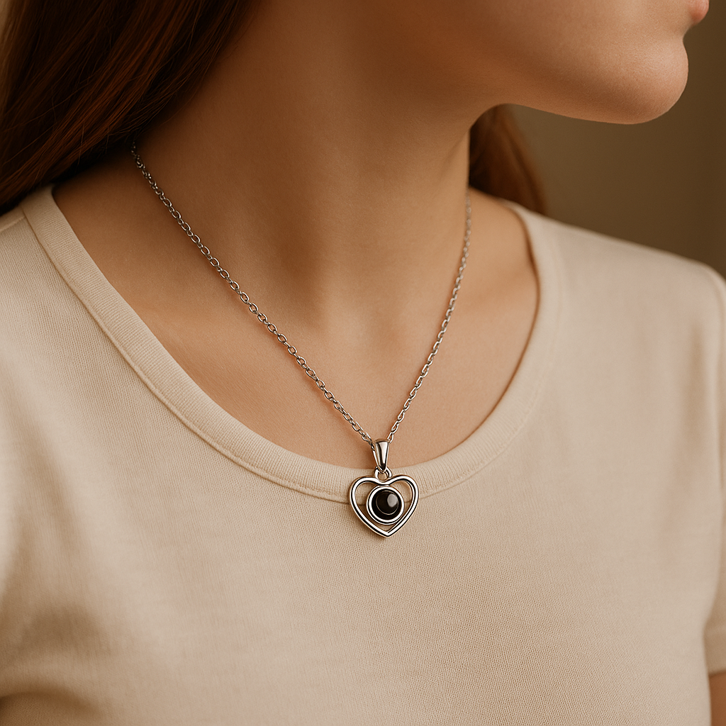 Diese Kette ist mehr als nur ein Accessoire – sie ist ein Symbol für besondere Erinnerungen. Im Anhänger verbirgt sich ein Foto, das man mit einem Lichtstrahl sichtbar machen kann. So trägst du deine Liebsten immer nah am Herzen, egal ob Partner, Familie oder dein treuer Vierbeiner.
